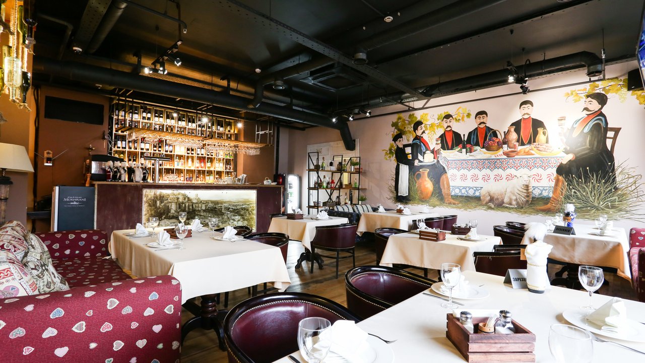В первую очередь понравилась кухня – все было очень вкусно, особенно салат и люля. Ресторан посещаю уже около десяти раз, потому что он удобно расположен рядом с работой. Интерьер аутентичный: роспись на стенах, горшки на потолке – все создает приятную атмосферу.